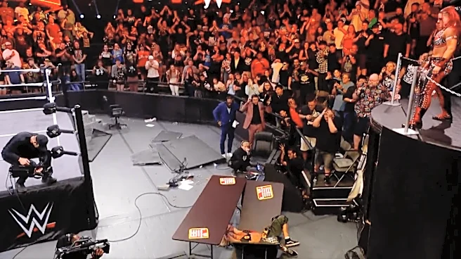 crashing through it. They stumbled to their feet and kept fighting despite clearly being spent. Zaria set up a table, Sol mounted a comeback, then she set up a table and put Zaria on it. Sol then climbed to the top of the perch with clearly one thing on her mind.