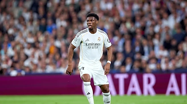 MADRID, SPAIN - APRIL 07: Aurelien Tchouameni of Real Madrid CF carries the ball during the UEFA Champions League 2025/26 Quarter-Final First Leg match between Real Madrid CF and FC Bayern München at Estadio Santiago Bernabeu on April 07, 2026 in Madrid, Spain. (Photo by Ion Alcoba Beitia/Getty Imag