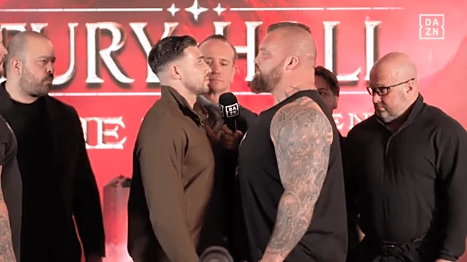 Face off! Tommy Fury stares down monstrous Eddie Hall at Misfits Boxing press conference (Video)
