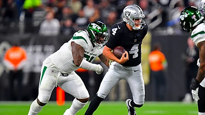 Nov 12, 2023; Paradise, Nevada, USA; Las Vegas Raiders quarterback Aidan O'Connell (4) comes under pressure from New York Jets defensive end John Franklin-Myers (91) during the first half at Allegiant Stadium. Mandatory Credit: Gary A. Vasquez-Imagn Images The 2026 NFL Draft is in the books, and tea