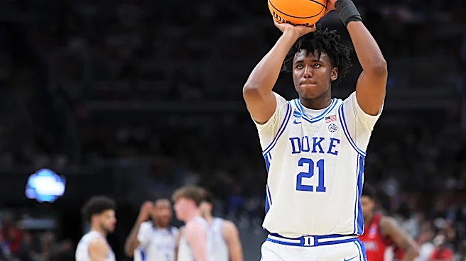 WASHINGTON, DC - MARCH 27: Patrick Ngongba #21 of the Duke Blue Devils shoots free throws against the St. John's Red Storm during the second half in the Sweet Sixteen of the 2026 NCAA Men's Basketball Tournament at Capital One Arena on March 27, 2026 in Washington, DC. (Photo by Patrick Smith/Getty