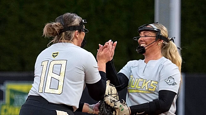 Oregon pitcher Elise Sokolsky, left, congratulates first baseman Rylee McCoy after an out against Oregon State at Jane Sanders Stadium in Eugene April 22, 2026. | Chris Pietsch/The Register-Guard / USA TODAY NETWORK via Imagn Images Softball takes down Oregon State Baseball defeats the beavers 2027