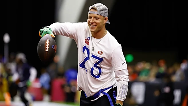 SAN FRANCISCO, CALIFORNIA - FEBRUARY 03: Christian McCaffrey #23 of the San Francisco 49ers holds a football after scoring a touchdown during the 2026 NFL Pro Bowl game between the AFC and the NFC at the Moscone Center South on February 03, 2026 in San Francisco, California. The NFC won 66-52. (Phot