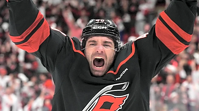 Apr 20, 2026; Raleigh, North Carolina, USA; Carolina Hurricanes left wing Jordan Martinook (48) scores the game winner in the second overtime against the Ottawa Senators in game two of the first round of the 2026 Stanley Cup Playoffs at Lenovo Center. Mandatory Credit: James Guillory-Imagn Images |