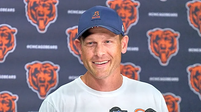 LAKE FOREST, IL - AUGUST 08: Ben Johnson of the Chicago Bears answers questions from the media during the Miami Dolphins and Chicago Bears Joint Training Camp on August 08, 2025, at Halas Hall in Lake Forest, IL. (Photo by Robin Alam/Icon Sportswire via Getty Images) | Icon Sportswire via Getty Imag