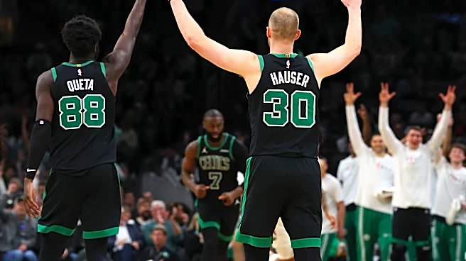 Apr 10, 2026; Boston, Massachusetts, USA; Boston Celtics forward Sam Hauser (30) and center Neemias Queta (88) celebrate during the second half against the New Orleans Pelicans at TD Garden. Mandatory Credit: Winslow Townson-Imagn Images | Winslow Townson-Imagn Images Neemias Queta’s first season as