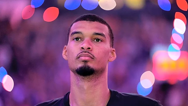 PORTLAND, OREGON - APRIL 26: Victor Wembanyama #1 of the San Antonio Spurs stands during the national anthem prior to Game Four of the Western Conference First Round Playoffs against the Portland Trail Blazers at Moda Center on April 26, 2026 in Portland, Oregon. NOTE TO USER: User expressly acknowl