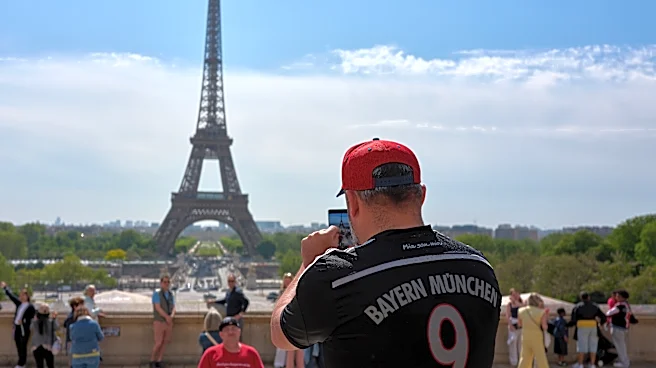 PARIS, FRANCE - APRIL 28: A Bayern Munich fan takes a photo of the Eiffel Tower ahead the UEFA Champions League 2025/26 Semi Final First Leg match between Paris Saint-Germain and FC Bayern München at Parc des Princes on April 28, 2026 in Paris, France. (Photo by Mattia Ozbot - UEFA/UEFA via Getty Im