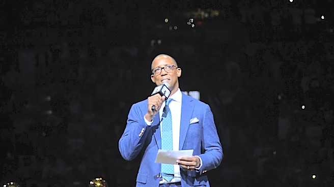 SAN ANTONIO, TX - MARCH 28: San Antonio Spurs TV Analyst Sean Elliot gives a speech during Manu Ginobili's Jersey Retirement Ceremony on March 28, 2018 at the AT&T Center in San Antonio, Texas. NOTE TO USER: User expressly acknowledges and agrees that, by downloading and or using this photograph, us