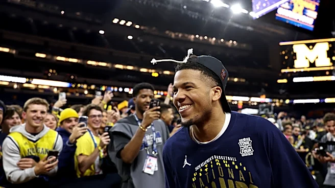 INDIANAPOLIS, INDIANA - APRIL 06: Trey McKenney #1 of the Michigan Wolverines celebrates after defeating the UConn Huskies 69-63 in the National Championship of the 2026 NCAA Men's Basketball Tournament at Lucas Oil Stadium on April 06, 2026 in Indianapolis, Indiana. (Photo by Michael Reaves/Getty I