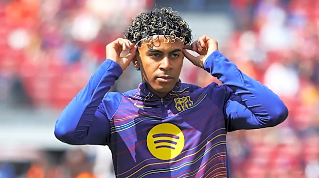 Lamine Yamal trains during the match between FC Barcelona and Rayo Vallecano de Madrid, corresponding to week 29 of LaLiga EA Sports, at the Spotify Camp Nou in Barcelona, Spain, on March 22, 2026. (Photo by Joan Valls/Urbanandsport/NurPhoto via Getty Images) | NurPhoto via Getty Images Lamine Yamal