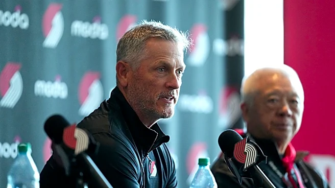 PORTLAND, OREGON - APRIL 02: Tom Dundon, Portland Trail Blazers owner, speaks during a press conference at Moda Center on April 02, 2026 in Portland, Oregon. NOTE TO USER: User expressly acknowledges and agrees that, by downloading and or using this photograph, User is consenting to the terms and co