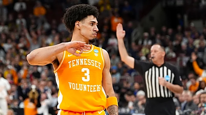 Tennessee guard Bishop Boswell (3) signals the made-3 during a NCAA Tournament Elite 8 game against Michigan at the United Center in Chicago on March 29, 2026. | Brianna Paciorka/News Sentinel / USA TODAY NETWORK via Imagn Images And another one. Tennessee guard Bishop Boswell will also hit the tran