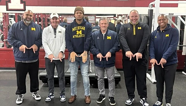 during the early portions of his sophomore season. He was already a high touted in-stater when the Wolverines entered the mix, and as the offers kept pilling up, so did his affinity for the program. Kitchen’s pledge occurred a day after the Ohio State game last season, and even during the coaching staff change a few months ago, his decision never wavered. Whittingham and multiple assistants even dropped by Muskegon High in January as a reminder that Kitchen will remain a cornerstone piece for the class. Michigan thinks highly of Kitchen’s ability to make impact off the edge, which is where he’ll likely contribute right out of the gate once enrolled.