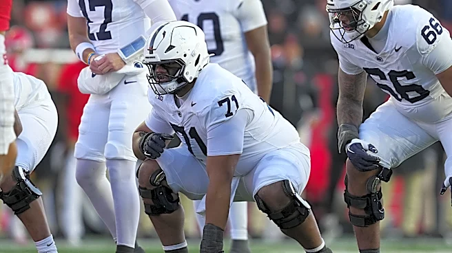 PISCATAWAY, NEW JERSEY - NOVEMBER 29: Olaivavega Ioane #71 of the Penn State Nittany Lions in action against the Rutgers Scarlet Knights at SHI Stadium on November 29, 2025 in Piscataway, New Jersey. The Penn State Nittany Lions defeated the Rutgers Scarlet Knights 40-36. (Photo by Mitchell Leff/Get