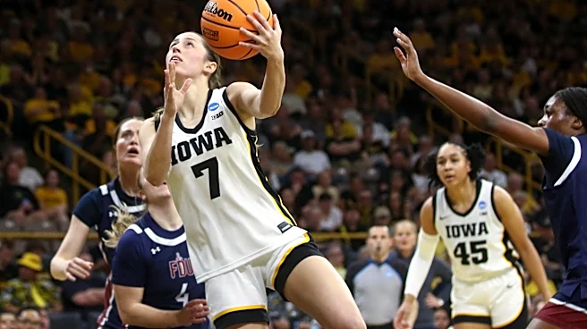 IOWA CITY, IA - MARCH 21: Guard Addie Deal #7 of the Iowa Hawkeyes goes to the basket in the first half against forward forward Leah Crosby #15 of the FDU Knights on March 21, 2026 at Carver-Hawkeye Arena during the first round of the NCAA Women's Basketball Tournament, in Iowa City, Iowa. (Photo by