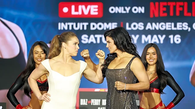 NEW YORK, NEW YORK - APRIL 15: Ronda Rousey and Gina Carano attend Rousey vs. Carano NYC Press Conference at The Palladium on April 15, 2026 in New York City. (Photo by Sarah Stier/Getty Images for Netflix) | Getty Images for Netflix Ronda Rousey is coming back for her first fight in a decade when s
