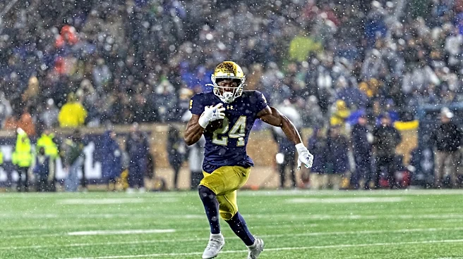 Nov 8, 2025; South Bend, Indiana, USA; Notre Dame Fighting Irish running back Jadarian Price (24) runs the ball against the Navy Midshipmen during the second half at Notre Dame Stadium. Mandatory Credit: Michael Caterina-Imagn Images | Michael Caterina-Imagn Images In Today’s Links: prospects, sever