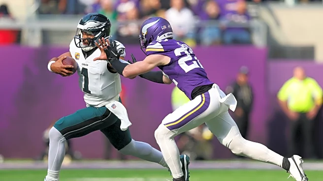 half, giving the defending Super Bowl champions the football first. As expected, the Eagles went heavy to Saquon Barkley early, and their fourth down rugby play helped to continue their opening possession into Minnesota territory. The Eagles then had another fourth down play, and they took advantage of a mismatch on defense as Jalen Hurts found A.J. Brown for a 37-yard touchdown to make it 7-0 midway through the first quarter.
