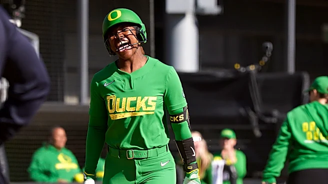 Oregon utility player Elon Butler celebrates after hitting a grand slam as the Oregon Ducks host the Stetson Hatters on Feb. 27, 2026, as part of the Oregon Classic at Jane Sanders Stadium in Eugene, Oregon. | Ben Lonergan/The Register-Guard / USA TODAY NETWORK via Imagn Images Butler Softball Ameri