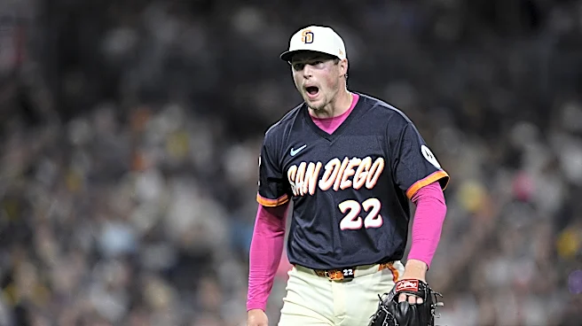 Coming to the Padres from the A’s at the 2025 trade deadline, in exchange for top prospect Leodalis DeVries, Miller was the setup man for Suarez. And he was really good. He pitched in 22 games and 23.1 innings with a 0.77 ERA, allowing 10 walks with 45 strikeouts. His fastball topped out at 104.5 mph in the playoffs against the Chicago Cubs – the highest velocity of any pitch in postseason history.