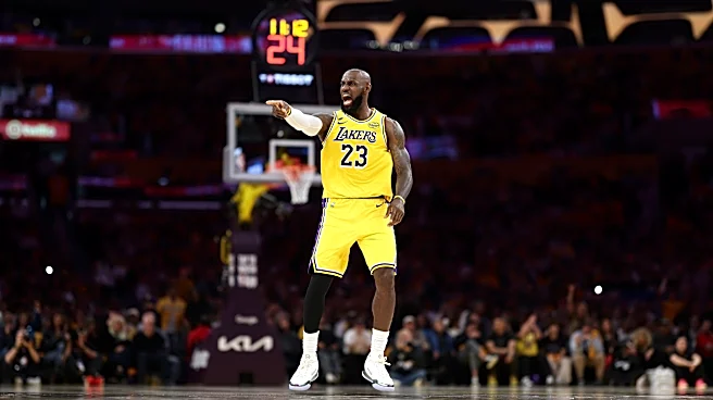 LOS ANGELES, CALIFORNIA - APRIL 18: LeBron James #23 of the Los Angeles Lakers reacts to making a shot during the first half of Game One of the First Round of the NBA Western Conference Playoffs against the Houston Rockets at Crypto.com Arena on April 18, 2026 in Los Angeles, California. (Photo by S