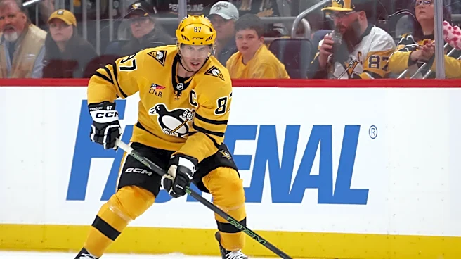 Apr 18, 2026; Pittsburgh, Pennsylvania, USA; Pittsburgh Penguins center Sidney Crosby (87) handles the puck against the Philadelphia Flyers during the second period in game one of the first round of the 2026 Stanley Cup Playoffs at PPG Paints Arena. Mandatory Credit: Charles LeClaire-Imagn Images |
