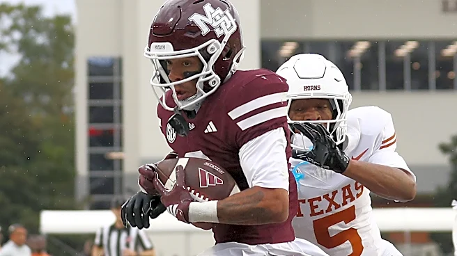 STARKVILLE, MISSISSIPPI - OCTOBER 25: Brenen Thompson #0 of the Mississippi State Bulldogs scores a touchdown during the first half against Malik Muhammad #5 of the Texas Longhorns at Davis Wade Stadium on October 25, 2025 in Starkville, Mississippi. (Photo by Justin Ford/Getty Images) | Getty Image