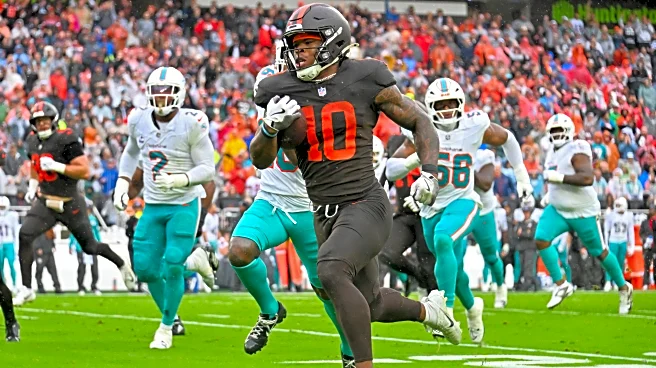 Cleveland’s momentum didn’t stop there. Miami fumbled on the kickoff, with S Grant Delpit punching it out and S Rayshawn Jenkins recovering at the Dolphins’ 46 yard line. After a 12-yard pass to Hannin, Miami was flagged 15 yards for unnecessary roughness after the shoved Gabriel to the ground after he had already handed the ball off. A few plays later, on 3rd-and-8 at the 12 yard line, a screen pass to Ford got 8 yards and a first down.