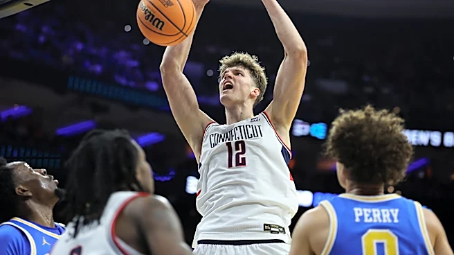 Mar 22, 2026; Philadelphia, PA, USA; UConn Huskies center Eric Reibe (12) dunks the ball against the UCLA Bruins in the first half during a second round game of the men's 2026 NCAA Tournament at Xfinity Mobile Arena. Mandatory Credit: Bill Streicher-Imagn Images | Bill Streicher-Imagn Images Former