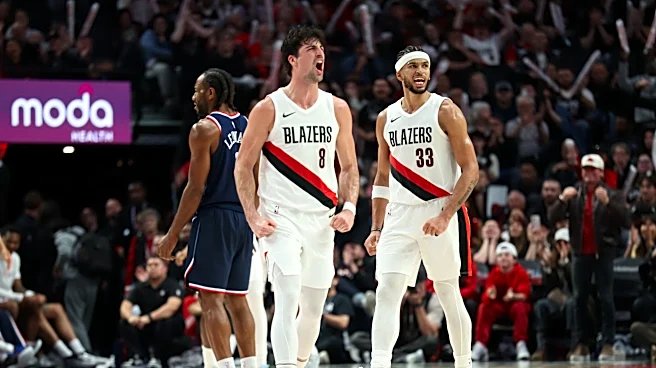 Apr 10, 2026; Portland, Oregon, USA; Portland Trail Blazers forward Deni Avdija (8) and forward Toumani Camara (33) react after a play against the LA Clippers during the second half at Moda Center. Mandatory Credit: Jaime Valdez-Imagn Images | Jaime Valdez-Imagn Images Portland Trail Blazers All-Sta