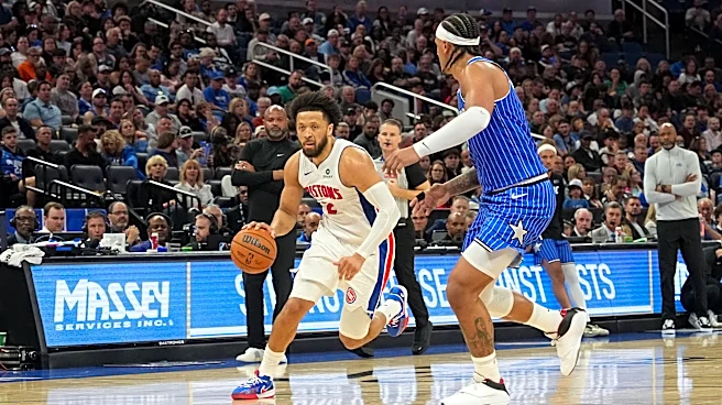 ORLANDO, FLORIDA - MARCH 1: Cade Cunningham #2 of the Detroit Pistons drives to the basket as Paolo Banchero #5 of the Orlando Magic defends in the second quarter at the Kia Center on March 1, 2026 in Orlando, Florida. NOTE TO USER: User expressly acknowledges and agrees that, by downloading and or