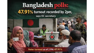 Voting for Bangladesh’s 13th general elections concluded at 4.30 pm (Bangladesh time) on Thursday, February 12, with voter turnout recorded at 47.91% as of 2 pm, the country's Election Commission (EC) Senior Secretary Akhtar Ahmed said.