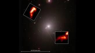 The astronomers were able to determine the motions, compositions and connections of the filaments to the surrounding environments. Previous studies had indicated that the filaments near the galaxy core were stirred by the powerful polar jets from the black hole. The new observations reveal that these filaments are also stirred by smaller local motions, caused by explosions of old stars, that are common throughout the galaxy. The researchers also discovered that the detached outer filament moves in a more steady, uniform way, and appears to be linked to an earlier jet from a past period of black hole activity. The composition of the gas within the filaments also vary. A paper describing the research has been published in the Monthly Notices of the Royal Astronomical Society.