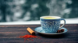 To create an authentic cup of Kashmiri Kahwa, you'll need a specific set of ingredients. The base of the tea is typically green tea leaves, known for their antioxidant properties. Next, a pinch of saffron adds a vibrant color and distinct flavor, and cinnamon sticks contribute a warm, slightly sweet taste. Cardamom pods provide a fragrant, aromatic touch, while cloves bring a spicy note. Almonds or walnuts are commonly added for a rich texture and additional flavor. Some recipes also include rose petals for a floral aroma. Ensure that all ingredients are fresh to achieve the best flavor. Quality of ingredients is crucial to a great-tasting Kahwa. The combination of these ingredients creates a harmonious and complex flavor profile that distinguishes Kahwa from other teas. Adjusting the amounts of spices can customize the flavor according to your preference.