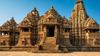 The Khajuraho temples in Madhya Pradesh are famous for their stunning sculptures and intricate carvings, which depict various aspects of life. Constructed by the Chandela dynasty between the 10th and 12th centuries, these temples are divided into three groups: western, eastern, and southern. The western group contains the most well-preserved temples, including the Kandariya Mahadeva Temple, which is celebrated for its elaborate sculptures, including those depicting different forms of life and culture. The temples' art, while known for its depiction of love and life, also showcases architectural brilliance and the rich cultural traditions of the region.