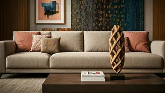 The interior design of 'Sabr' is a captivating fusion of minimalist principles and eclectic touches, guided by the couple's shared vision. Remo D'Souza generally prefers subtle color palettes and a less cluttered environment, which led to a predominantly minimalist approach throughout the home. However, his wife Lizelle, who manages most of the interior design aspects, has skillfully introduced vibrant elements, particularly in areas like the TV room. This space stands out with its bold blue walls, eye-catching art pieces, luxurious Versace cushions, and ambient lighting, creating a lively yet sophisticated atmosphere. The interiors involved considerable experimentation and refinement, with Lizelle skillfully balancing Remo's preference for subtlety with her desire for pops of color and artistic expression. The result is a home that feels both calming and invigorating, a true reflection of their distinct personalities and their journey in creating a shared living space.