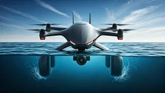 Avataar is engineered to execute a seamless transition from aerial flight to underwater operations, a capability previously unattainable for a single unmanned system. Unlike conventional drones confined to the skies, Avataar is a sophisticated surveillance platform that can effectively operate in both atmospheric and aquatic domains. This dual functionality drastically enhances its utility for a variety of critical applications. The drone's construction features a saltwater-resistant carbon fiber frame, specifically designed to withstand the corrosive effects of marine environments. Additionally, it is equipped with specialized coatings that actively repel salt deposits and prevent the accumulation of grime on its sensors, ensuring consistent performance even in harsh oceanic conditions. This resilience is a testament to the meticulous engineering behind Avataar, ensuring reliability and longevity in its challenging operational theaters.