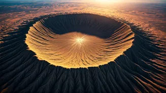 Located in the desert region of Mauritania, West Africa, the Tenoumer Crater is a striking circular feature that serves as a testament to ancient extraterrestrial impacts. Estimated to have formed around 2.5 million years ago, this impact structure is approximately 1.9 kilometers in diameter and features a well-defined rim against the arid landscape. The geological evidence suggests a moderate-sized meteorite striking the Earth, leaving behind this distinct, bowl-shaped depression. The surrounding desert terrain, characterized by sand dunes and sparse vegetation, provides a stark and beautiful backdrop to the crater. While not as frequently visited as some other impact sites due to its remote location, Tenoumer offers a raw and powerful visual of Earth's encounter with celestial bodies. Its preservation in the dry desert climate allows for a clear appreciation of the impact's geometry and the geological forces involved.