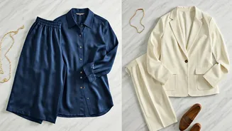 To ensure your co-ord sets achieve a sophisticated look rather than resembling nightwear, consider a few key styling principles. Prioritize structured fits, such as straight-cut trousers or tailored silhouettes, over overly loose or shapeless designs. Opt for fabrics that offer a better drape and feel, like cotton, rayon, or quality blends, as opposed to flimsy or overly thin materials that can easily look cheap. When selecting prints, steer clear of anything too loud, cartoonish, or overtly casual; subtle patterns or well-designed motifs work best. Elevate the ensemble by incorporating real accessories – think structured bags, tasteful jewelry, and appropriate footwear that complements the outfit's intended vibe. Furthermore, paying attention to defined necklines, such as V-necks or collars, can significantly contribute to a more polished appearance.