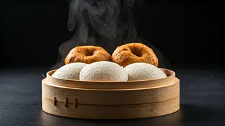 Vada, commonly found in South India, is a savory doughnut-shaped fritter. Though they are typically fried, a lighter alternative involves steaming them. Made from a batter of urad dal, spices and herbs are added to enhance the flavor. These are steamed until fluffy, and then served with sambar and chutney. The process showcases the versatility of the ingredients. The combination of textures makes it a delectable dish and a popular breakfast choice. The preparation method can be modified to suit healthier preferences.