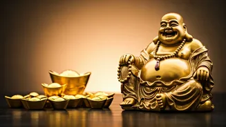 The Laughing Buddha comes in various forms, each with unique significance. Some hold a wealth pot to symbolize abundance, while others carry prayer beads, representing wisdom and spirituality. A Laughing Buddha with a fan is thought to help ward off negativity. Selecting the form should align with personal intentions and desired outcomes. For example, a Laughing Buddha with children symbolizes fertility and family happiness. When choosing a Laughing Buddha, it's also important to consider the material; gold or bronze Buddhas are often perceived as auspicious. This choice also has a profound impact on one's home's overall aesthetic and Feng Shui. The selection process allows for customization, ensuring that the chosen Laughing Buddha aligns with one's individual aspirations for wealth and joy.