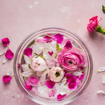 Rose water, or gulab jal, is a fragrant liquid made by distilling rose petals with water. It is known for its hydrating, soothing, and anti-inflammatory properties. Rose water can help to balance the skin's pH level, reduce redness, and hydrate the skin.