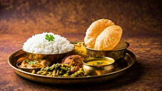 (baked wheat balls), and churma (sweet crumbled wheat). The dal is a hearty lentil stew, slow-cooked to perfection, often featuring a blend of different lentils and aromatic spices. The baati, round bread rolls, are baked over a wood fire, giving them a slightly smoky flavor and a firm exterior. Churma, a sweet mixture of coarsely ground wheat, ghee, and sugar, provides a delightful contrast to the savory dal and baati. This combination offers a complete and satisfying meal, a true taste of Rajasthan's heritage. The dish is not just a meal; it is an experience, a celebration of flavors and traditions. Each element is carefully prepared and served together, creating a harmonious balance of tastes and textures that is both comforting and memorable. It is a must-try dish for anyone visiting Jaipur, offering a glimpse into the local way of life through its food.