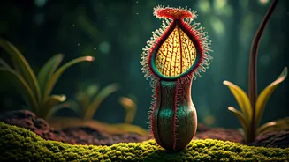 Among the carnivorous wonders of the plant kingdom, the Pitcher Plant stands out with its ingenious method of ensnaring prey. This fascinating flora has evolved specialized, pitcher-shaped leaves that are filled with a digestive fluid. Insects are lured into these fluid-filled traps, often by attractive nectar or colours, and once inside, they are unable to escape. The plant then slowly digests its captured meals, absorbing vital nutrients from them. This predatory adaptation allows the Pitcher Plant to thrive in nutrient-poor soils, turning the tables on the insect world.