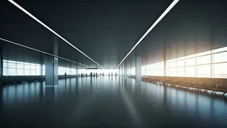 eliminates the need for passengers to navigate between separate buildings, creating a unified and intuitive travel environment. The terminal is cleverly divided into two distinct levels to optimize passenger flow and operational efficiency. The upper level is dedicated to departures, managing the initial stages of a passenger's journey, while the lower level exclusively handles arrivals, ensuring a smooth transition for those landing. This clear separation of functions prevents confusion and enhances the overall passenger experience. Connecting these two key areas is a shared concourse, acting as a central hub. Unlike traditional airports, there isn't a direct ramp to the departure level; instead, passengers elegantly ascend using escalators and lifts strategically placed within the arrival concourse. Two escalators and two lifts, positioned on each side, provide easy access, ensuring that moving between levels is a hassle-free affair for everyone, regardless of luggage or mobility needs.