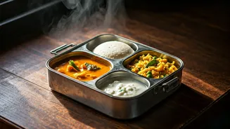 Vegetarian thalis formed the cornerstone of most meals served on Indian trains throughout the 1990s, designed for ease of preparation and reheating in a moving environment. A typical thali would feature a wholesome combination of fluffy rice or soft chapatis, a simple yet flavorful yellow dal, a basic vegetable preparation, and a tangy pickle. For longer journeys, passengers could also opt for hearty dishes like pulao or khichdi, which were both filling and gentle on the digestive system. These staple vegetarian meals were crafted to be accessible and satisfying for a wide range of travelers, ensuring that everyone could enjoy a comforting and nutritious meal regardless of the train's route or duration. The focus was on providing simple, well-cooked dishes that offered sustenance and a sense of familiarity during extended travel.