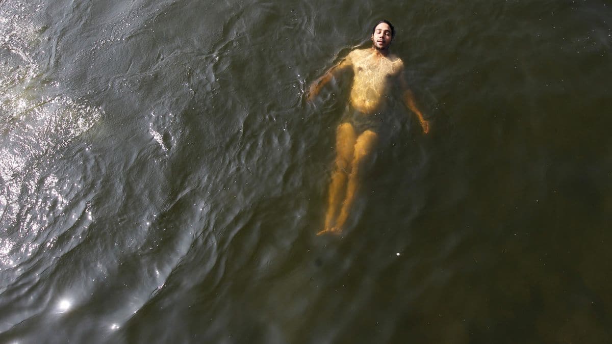 A man cools off in the waters of Dal Lake on a hot summer day in Srinagar. It recorded the highest frequency of daytime and compound heatwaves among India's 100 smart cities. File photo/Reuters