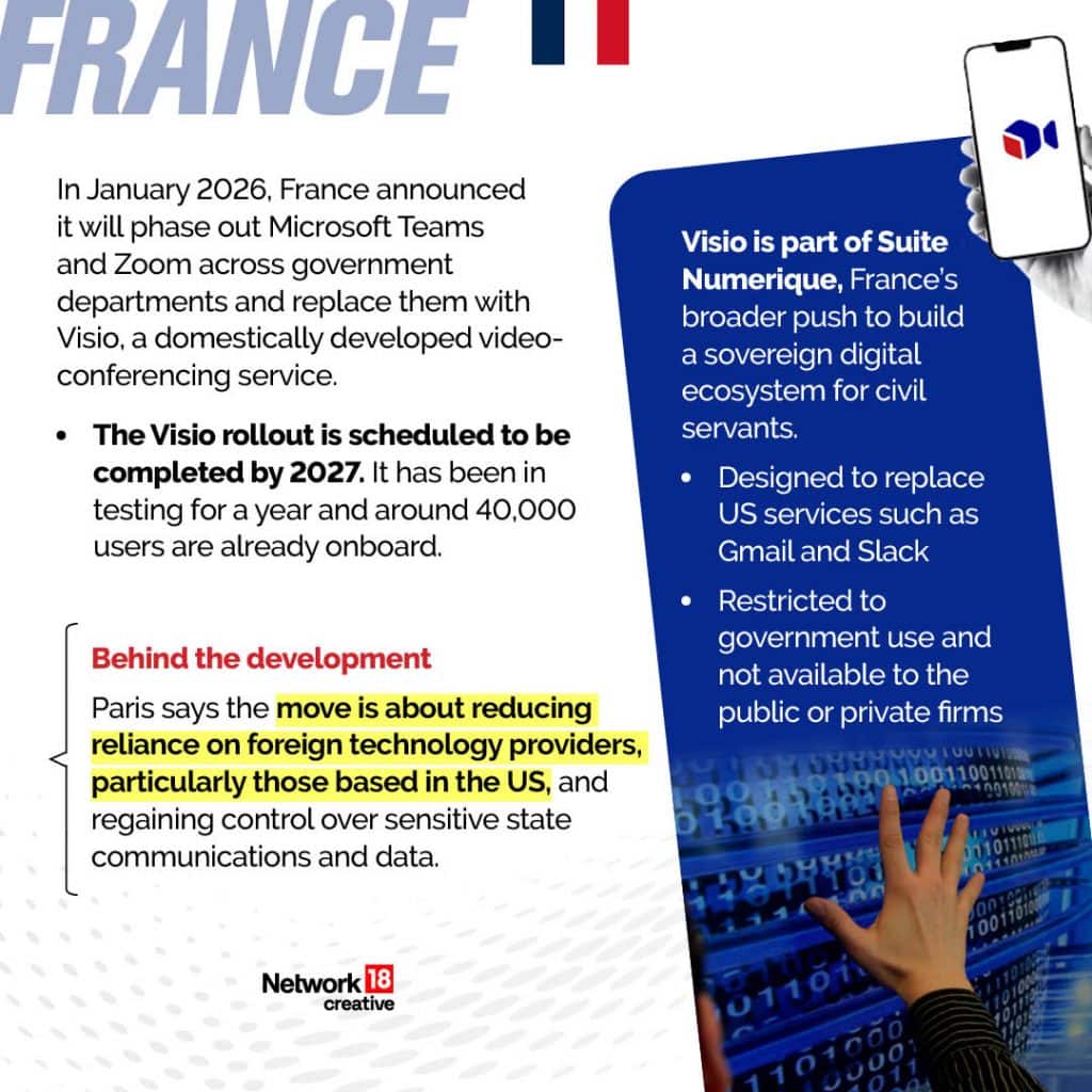 In such a climate, France has decided to step away from US technology. On Thursday, French Prime Minister Sebastien Lecornu announced that government officials will stop using American-owned video conference software in favour of those developed in France itself in a bid to reduce dependence on US digital infrastructure.