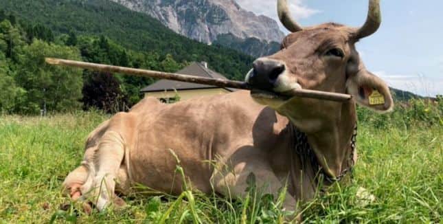 Veronika, a Swiss Brown cow in the Austrian Alps, has long been seen picking up sticks and brushes to deliberately scratch an itch
